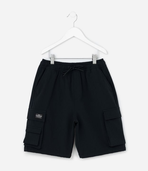 Bermuda Infantil em Poliamida com Bolso Cargo - Tam 5 a 14 Anos Preto