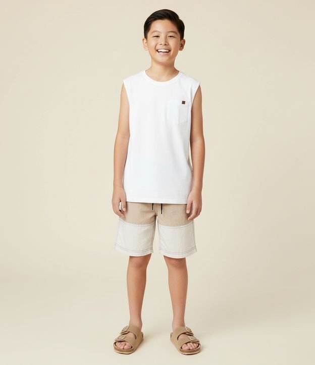 • Bermuda Infantil em Poliamida com Recortes Coloridos - Tam 5 a 14 Anos Preto/Bege/Off White 3