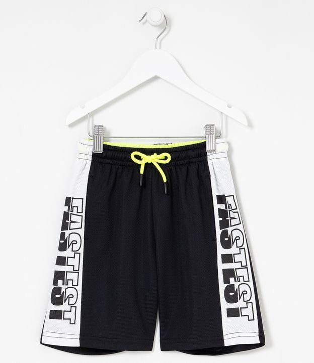 Bermuda Infantil Esportiva Recortes e Estampa na Lateral  - Tam 5 a 14 anos