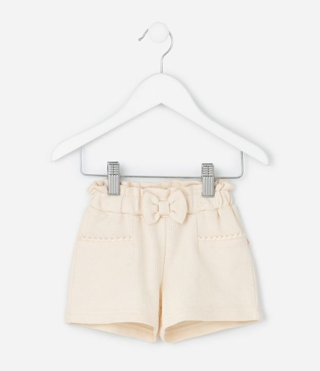 Bermuda Infantil Texturizada com Laço – Tam 0 a 18 Meses Bege Claro