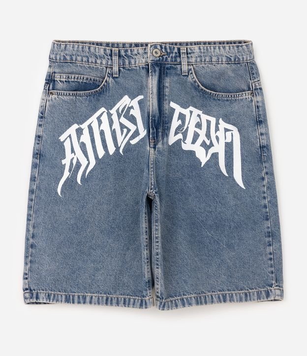 Bermuda Jeans Baggy com Silk Frontal Azul