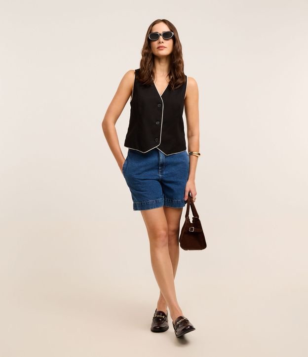 Bermuda Jeans com Botão Diferenciado e Bolso