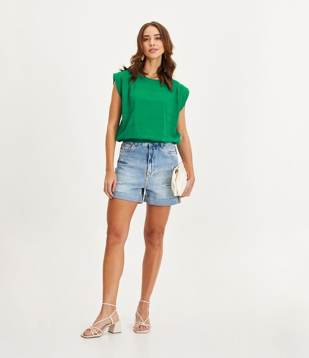 Bermuda Jeans com Rasgos e Barra Dobrada