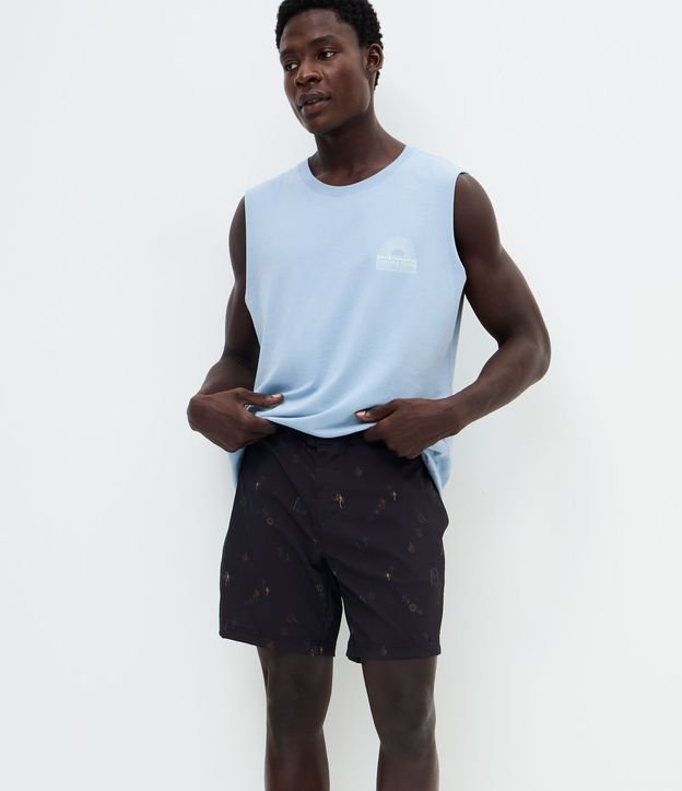 Bermuda Masculina Banho Cós Fixo Ícones Tropicais Preto