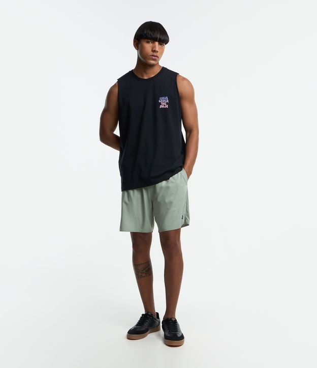 Bermuda Mescla com Cós Elástico e Amarração Cinza Esverdeado