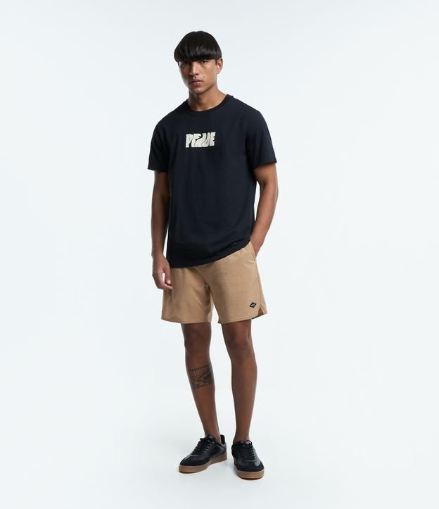 Bermuda masculina confeccionada em poliéster, com cós elástico e amarração na cintura. Possui padronagem liso mescla e bolsinho traseiro com zíper.