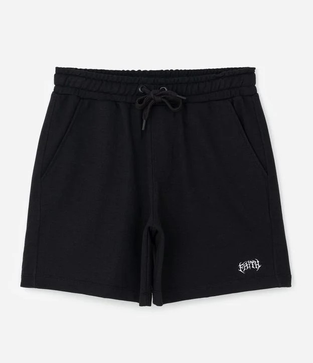 Bermuda Moletinho Regular com Estampa FAITH Preto