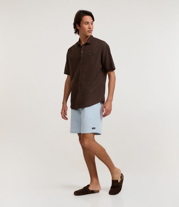 Bermuda Regular com Cordão e Efeito Rajado Azul