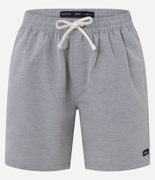 Bermuda Regular com Cordão e Efeito Rajado Cinza