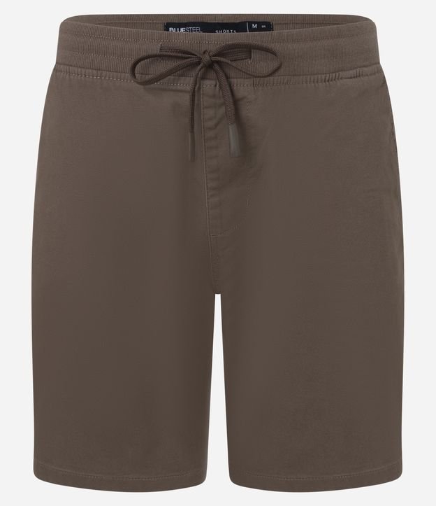 Bermuda Regular Slim em Sarja com Cós Elástico e Bolsos Marrom Médio