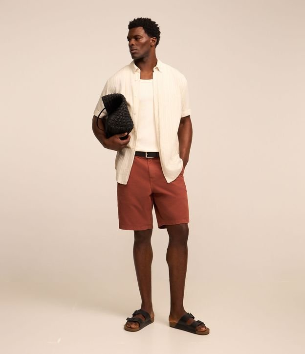 Bermuda masculina, modelo reto, confeccionada em sarja. Básica sem perder estilo, a peça é uma opção versátil para compor visuais casuais.