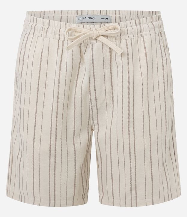 Bermuda Reta em Algodão Texturizado com Listras Sahara Branco