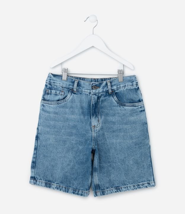 Bermuda Reta Infantil em Jeans com Cós Elástico - Tam 5 a 14 anos Azul Médio