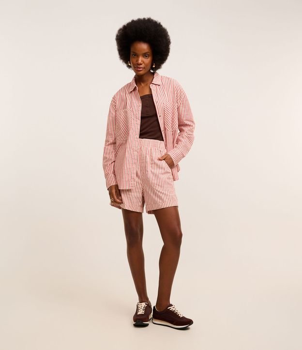 Bermuda Runner em Sarja com Listra e Cós Elástico Vermelho