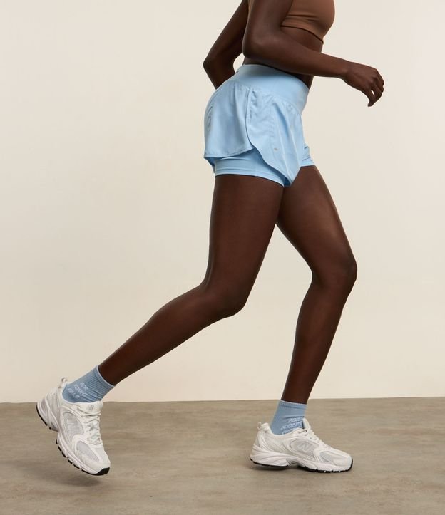 Bermuda Runner Esportiva em Microfibra com Bolso Funcional Azul Claro