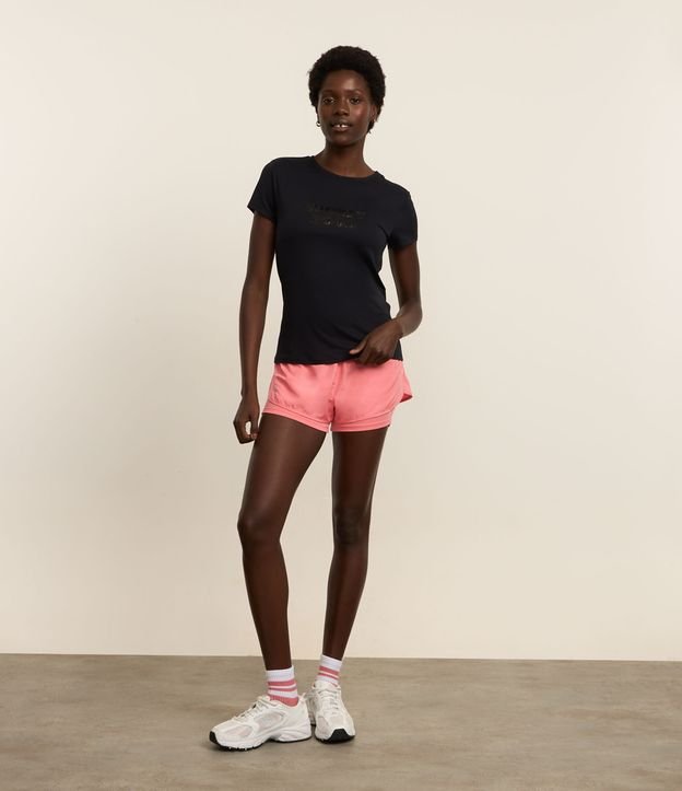 O short runner esportivo tem o gancho mais deslocado, com elástico na cintura e a barra arredondada. Tem a modelagem mais soltinha e é ótimo para praticar exercícios.