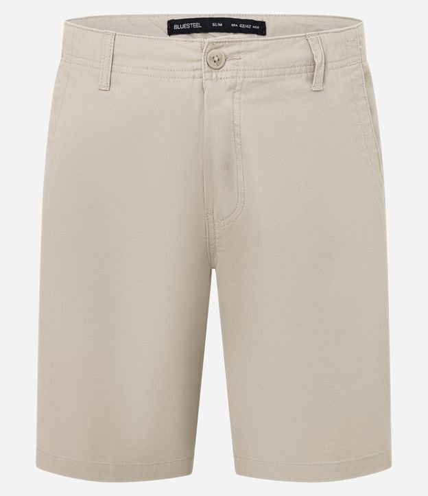 Bermuda masculina confeccionada em sarja mais sustentável através de boas práticas ambientais, no modelo slim. Possui cós com passante, fechamento tradicional, bolsos e alfaiatada.