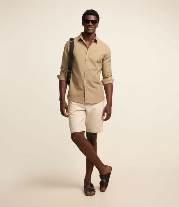 Bermuda Slim em Sarja com Elastano Bege Crú