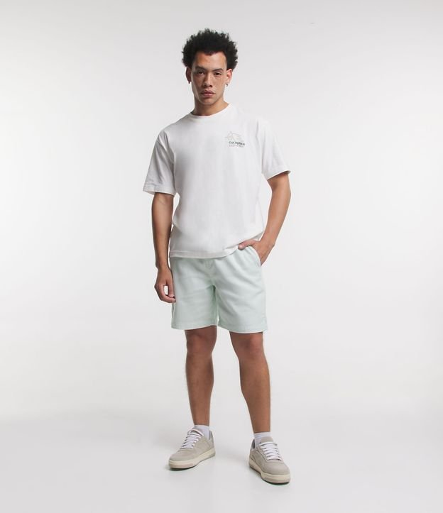 Bermuda Regular em Sarja com Cordão no Cós Textura e Fenda na Barra