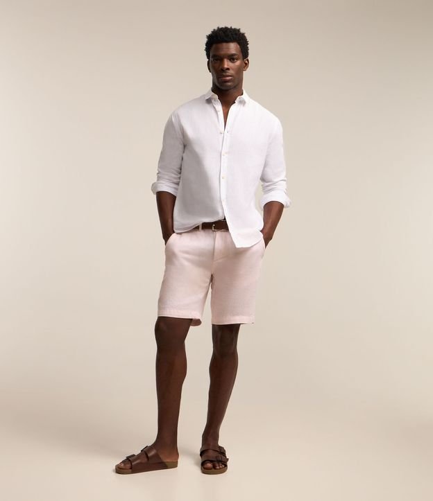 Bermuda Slim Texturizada em Linho com Algodão Rosa Claro