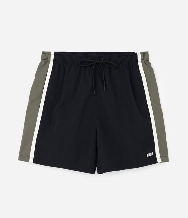 Bermuda Tecnológico Liso com Listras Contrastantes na Lateral Preto