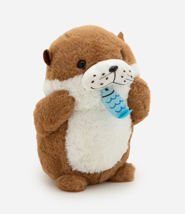 Bicho de Pelúcia em Formato de Lontra com Peixe Decorativo Marrom