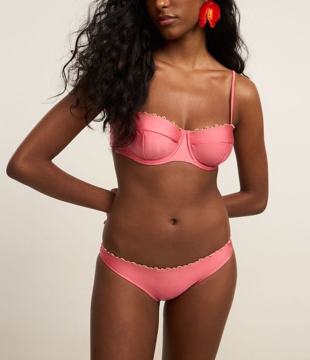 Biquíni Calcinha Básica em Microfibra Brilho com Mini Aviamentos de Madeira Rosa