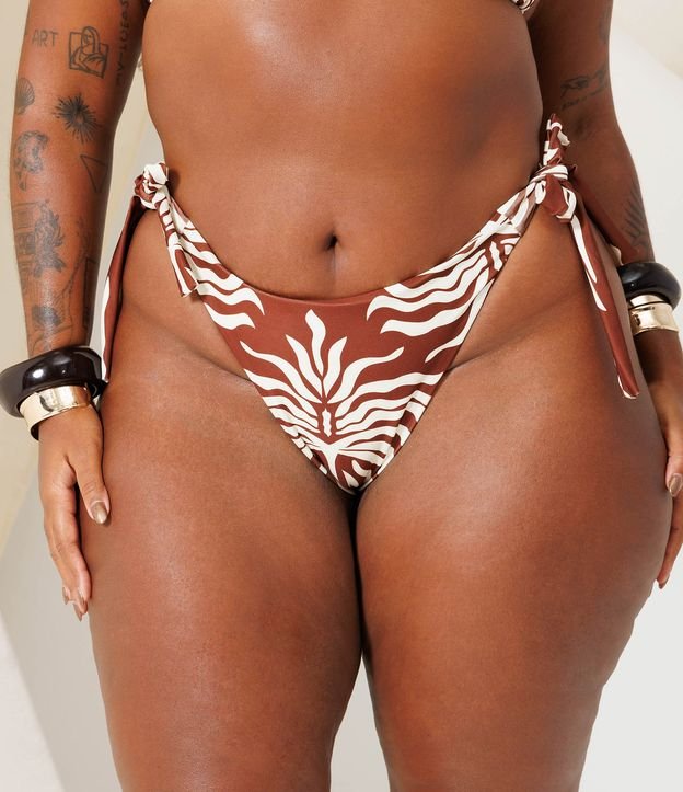 Biquíni Calcinha com Amarração Lateral e Estampa Folhagem Curve & Plus Size Marrom