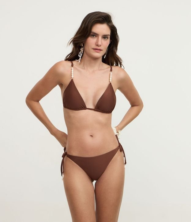 Biquíni Calcinha com Lacinho e Ponteira de Pérola Marrom