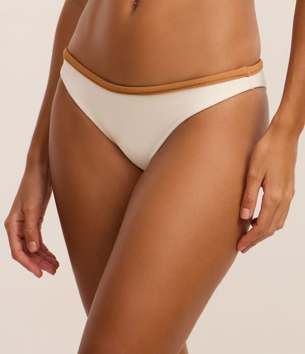 Biquíni Calcinha em Microfibra Texturizada com Cós Contrastante Off White