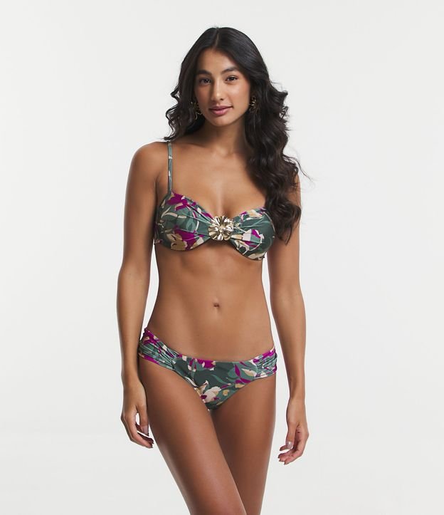 Biquíni Calcinha em Poliamida com Lateral Drapeada e Estampa Floral