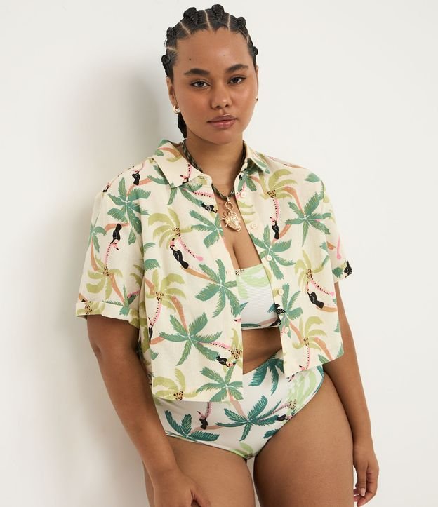 Biquíni Calcinha Hot Pant com Estampa Tropical Curve & Plus Size Off White