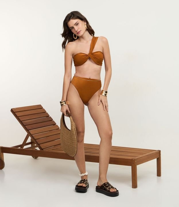 Biquíni Calcinha Hot Pants em Microfibra Canelada Brilhante Marrom
