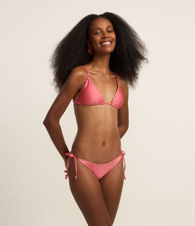 Biquíni Calcinha Lacinho em Microfibra Brilho com Fio Duplo e Aviamentos de Madeira Rosa
