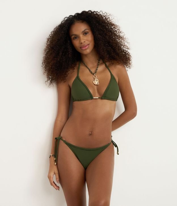 Biquíni Calcinha Lacinho em Poliamida com Amarrações Trançadas Verde Acinzentado