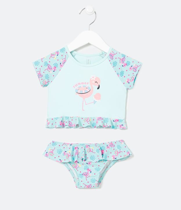 Biquíni Cropped Infantil Estampa de Flamingos - Tam 1 a 4 anos