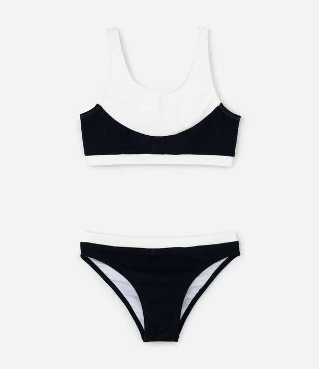 Biquini Infantil em Microfibra com Textura - Tam 5 a 16 Anos Preto/Branco