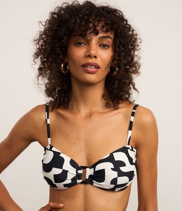Biquíni Top Bandeau com Estampa Calçadão e Alça Removível Preto/Branco
