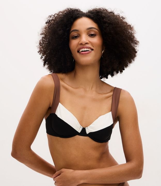 Biquíni Top Bandeau com Estampa Color Block Preto