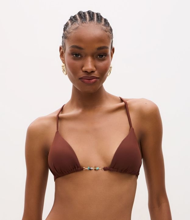 Biquini Top com Costas Trançadas e Aviamento de Pedrinhas Marrom