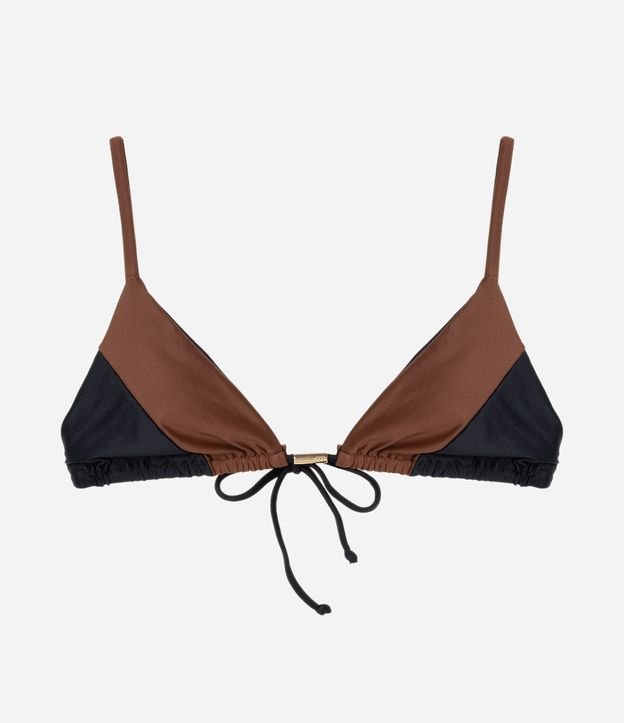 Biquíni Top Cortininha com Bojo Removível e Estampa Bloco de Cor Preto/Marrom