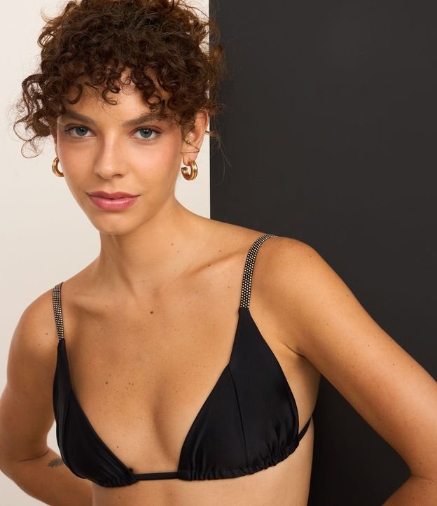 Biquíni Top Cortininha em Microfibra com Alça Elástica Contrastante Preto