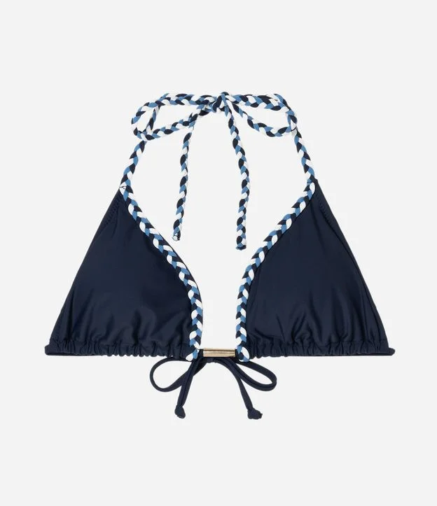 Biquíni Top Cortininha em Microfibra com Detalhe de Trancinha Azul