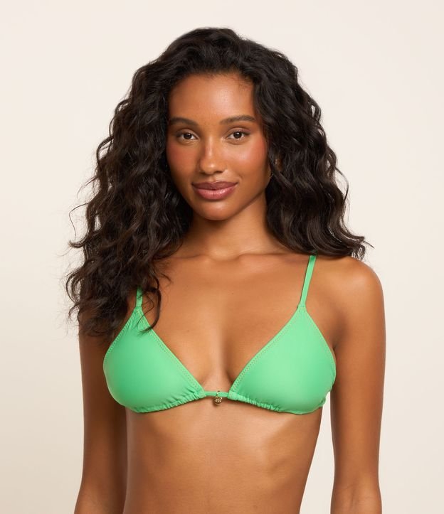 Biquíni Top Cortininha em Microfibra com Pesponto em Fio Metalizado Verde