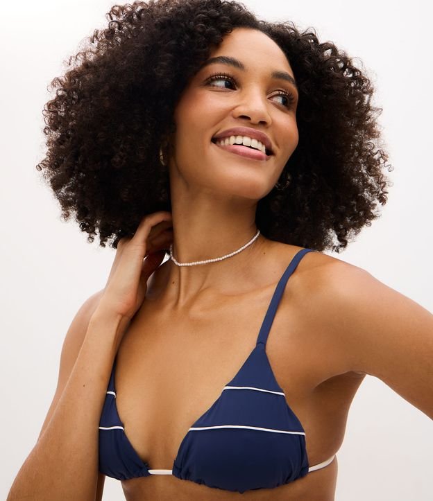 Biquini Top Cortininha em Microfibra com Viés Contrastantes Azul