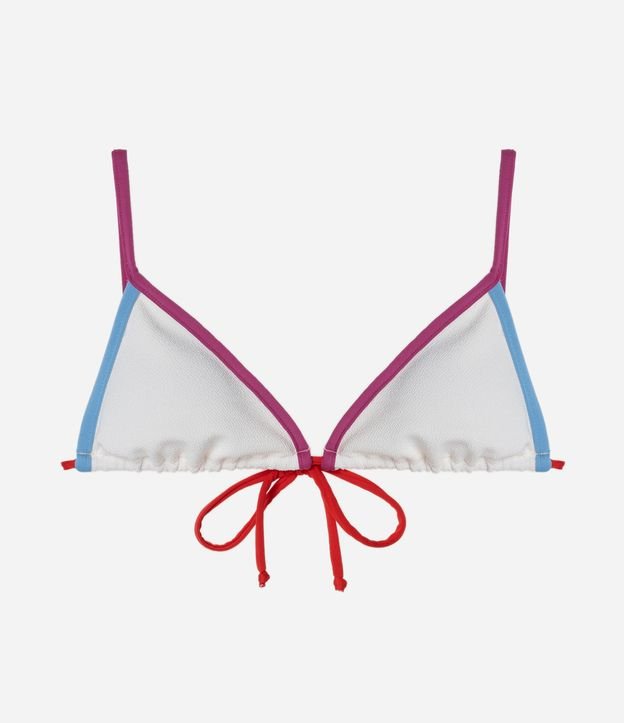 Biquini Top Cortininha em Microfibra Texturizada com Viés Coloridos Branco