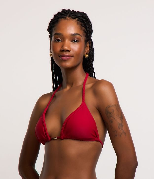 Top de biquíni confeccionado em poliamida com boas práticas ambientais. Modelo cortininha com alças trançadas e superfície lisa, sem estampa. Ideal para quem busca conforto e estilo na praia ou piscina, com tecido leve e de secagem rápida.