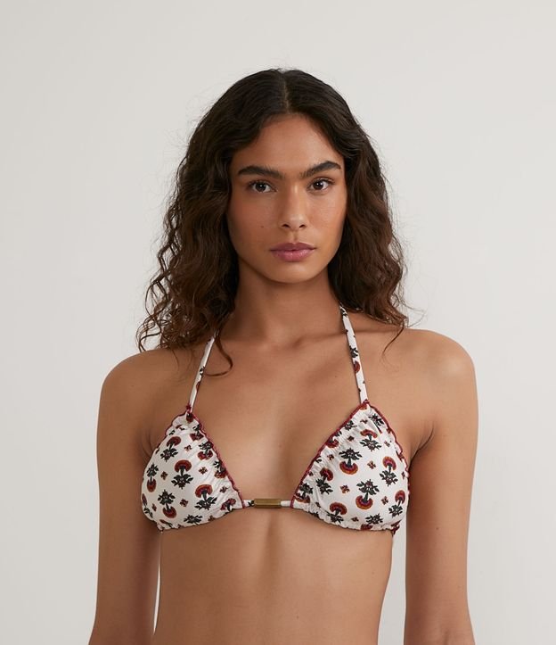 Biquíni Top Cortininha em Poliamida com Estampa de Florzinhas e Frufru