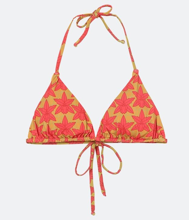 Biquíni Top Cortininha em Poliamida com Estampa de Folhagem