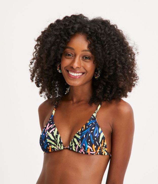 Biquíni Top Cortininha em Poliamida com Estampa de Folhagem